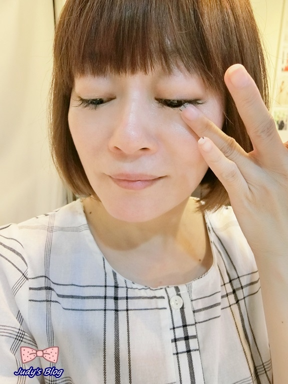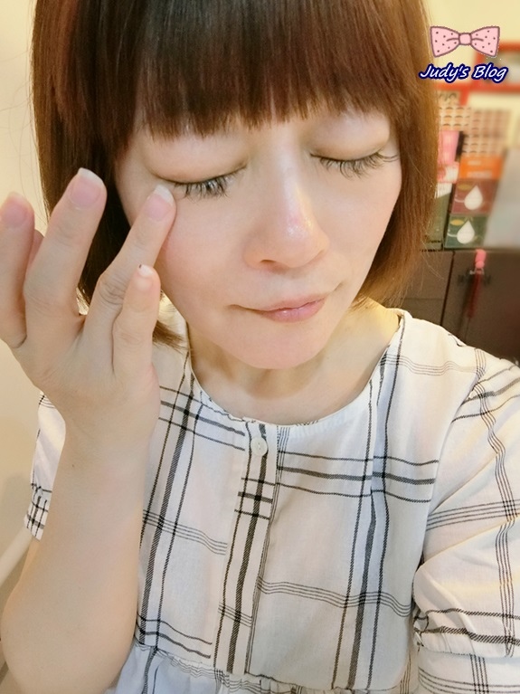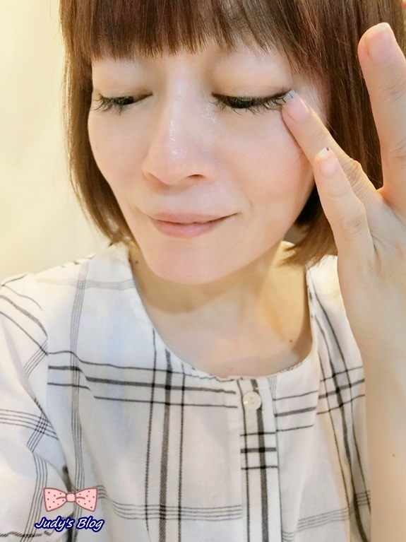 之後Judy老師也會輕輕以指腹搭配從眼頭往眼尾方向平滑並稍加拉提的按摩手法