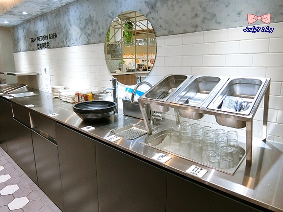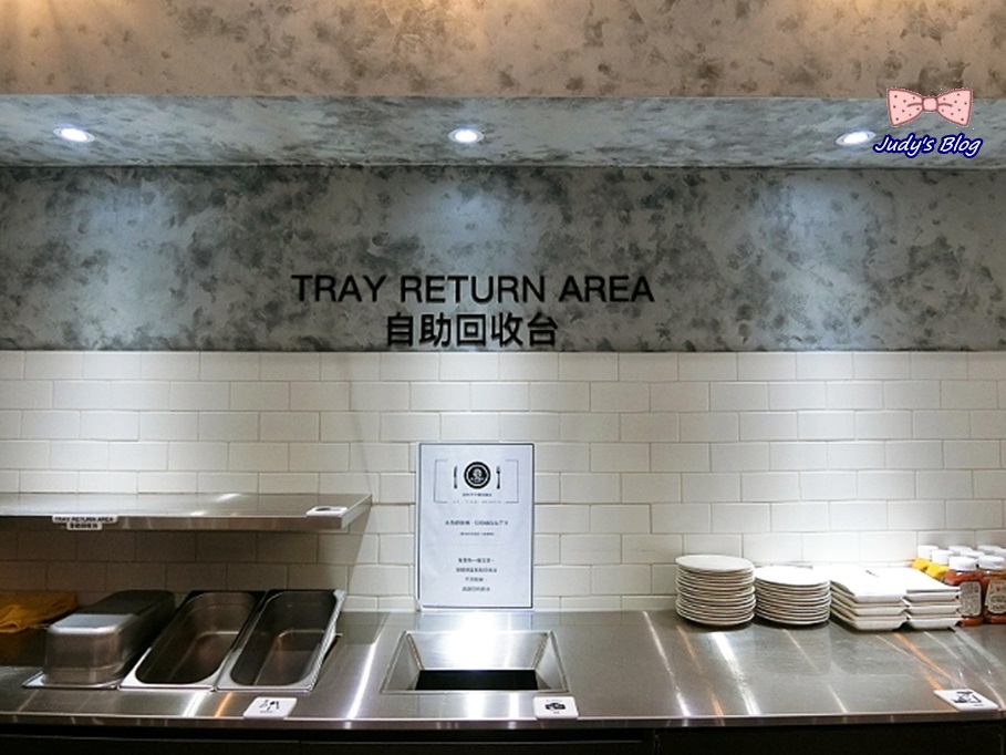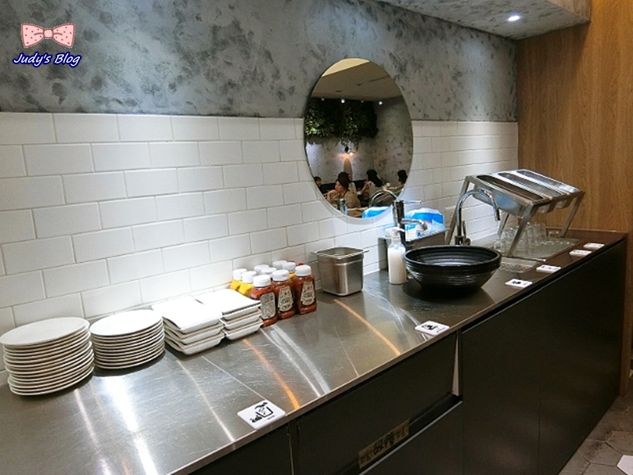 另外,At First Brunch緣來採用的是自助的方式,所以有一側是不鏽鋼吧台的餐具加配料區及自助回收區