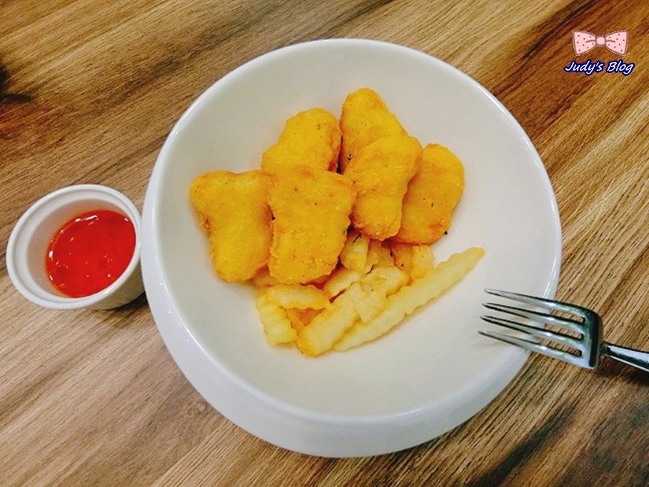 首先來看看這雞塊,旁邊還有薯條做搭配~