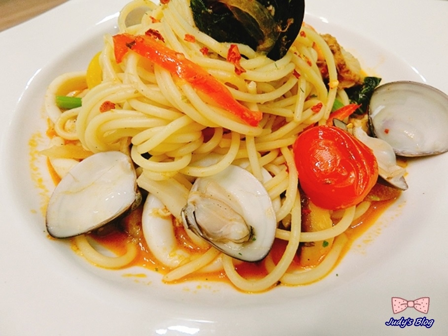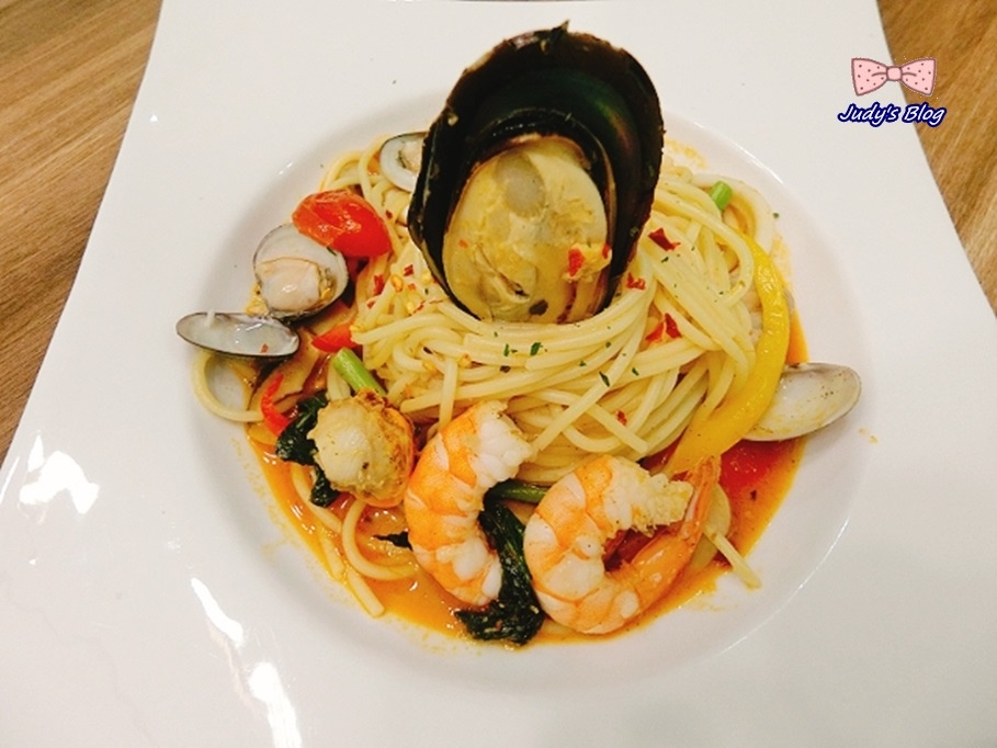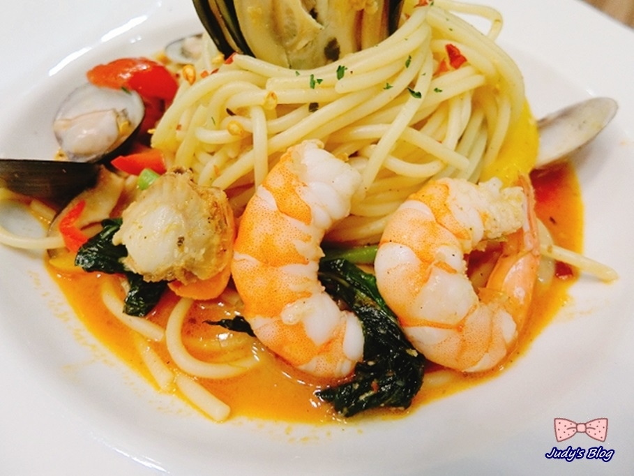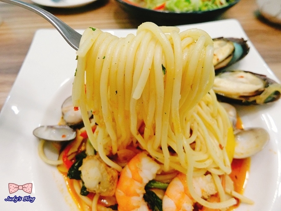 Judy老師的海鮮義大利麵,滿滿的海鮮包覆著義大利麵