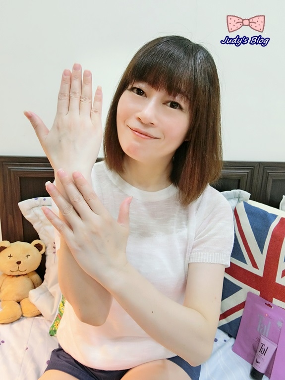 看看Judy老師的手部,天阿~~手掌與手臂之間整個是超級明顯的色差惹~