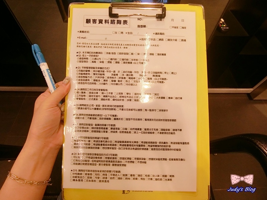 首先Judy老師第一次到【LUSSO中山店】所以先填基本資料,好讓設計師更了解自己的需求與髮況。